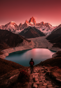 The early morning light casts a warm glow over the snow-capped peaks, creating a serene and awe-inspiring scene. From the summit, you can gaze out over the turquoise-hued Gokyo Lakes nestled below, with the Ngozumpa Glacier snaking through the valley – a sight that will forever be etched in your memory.